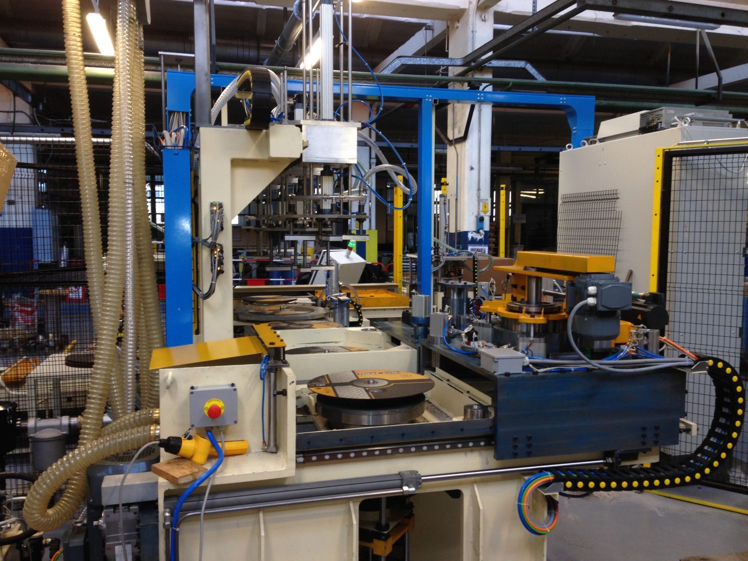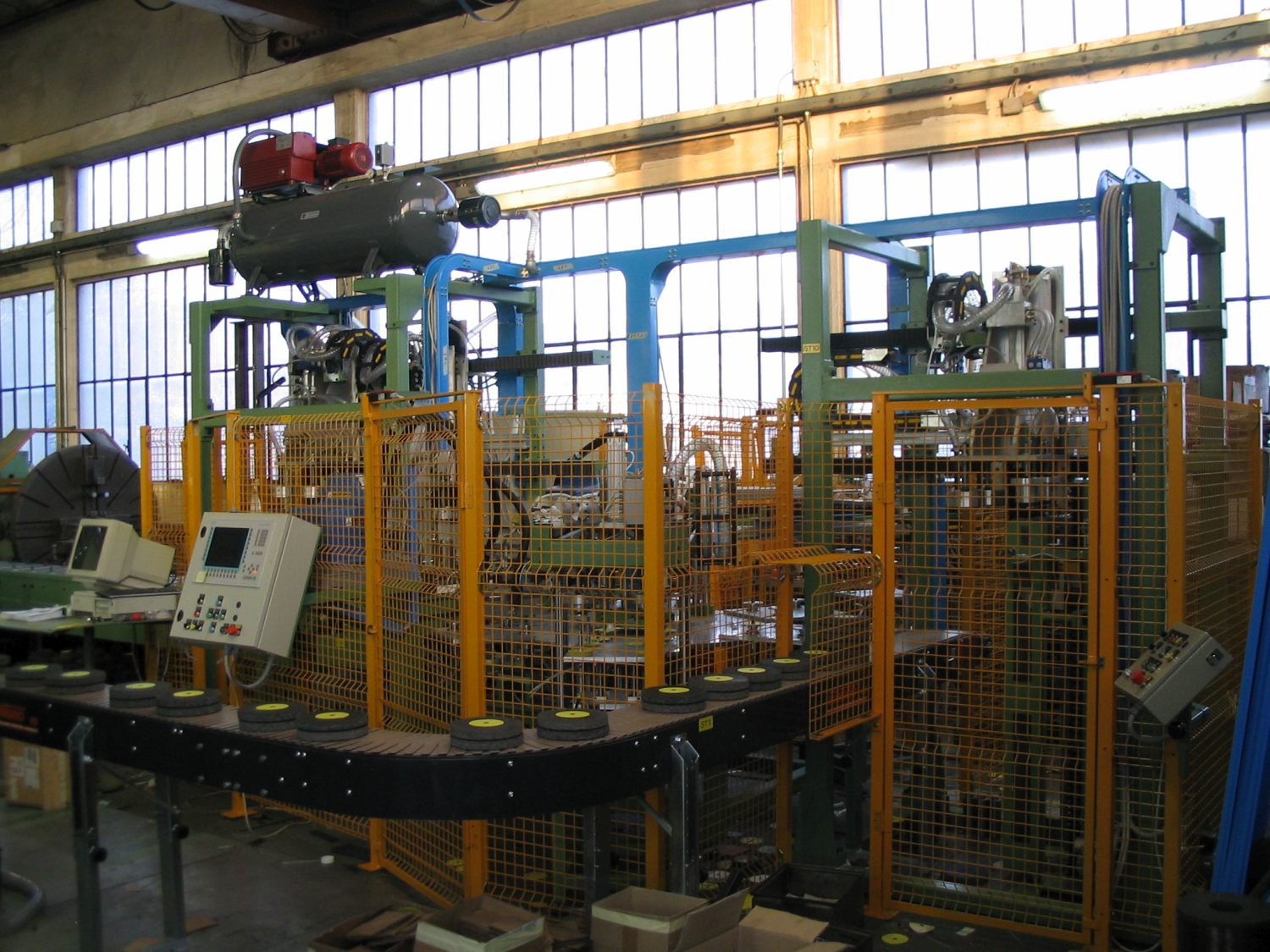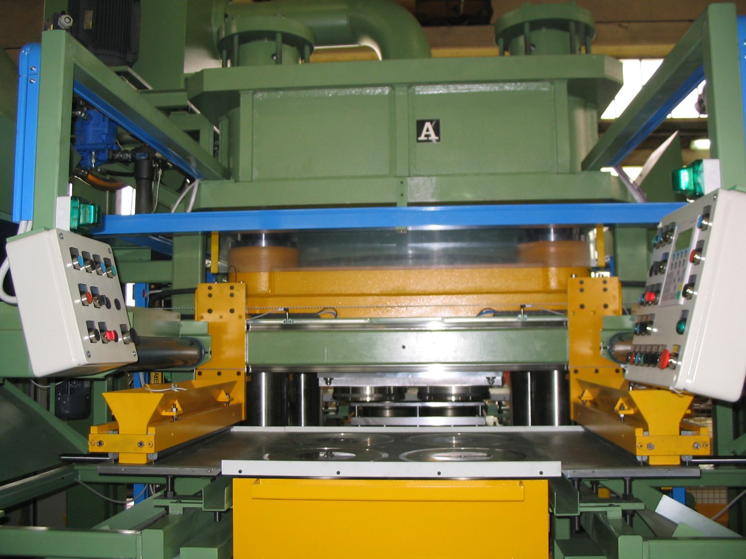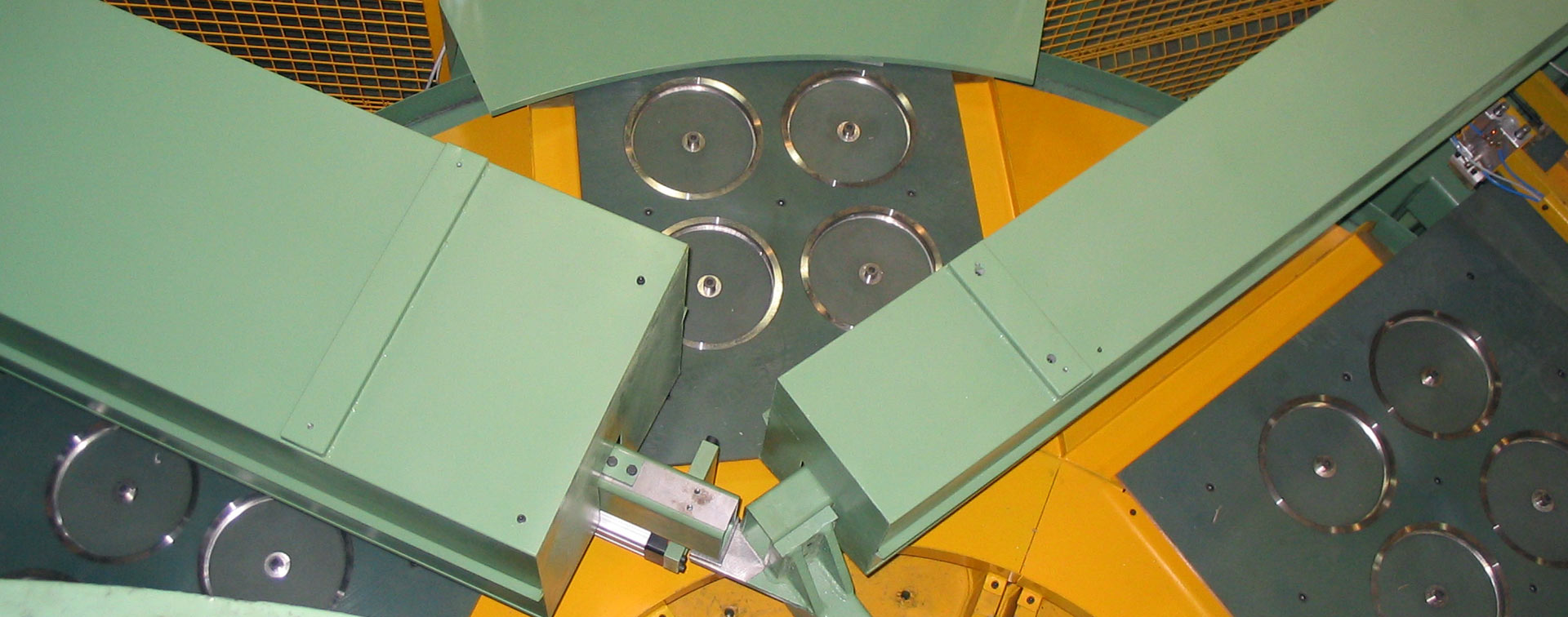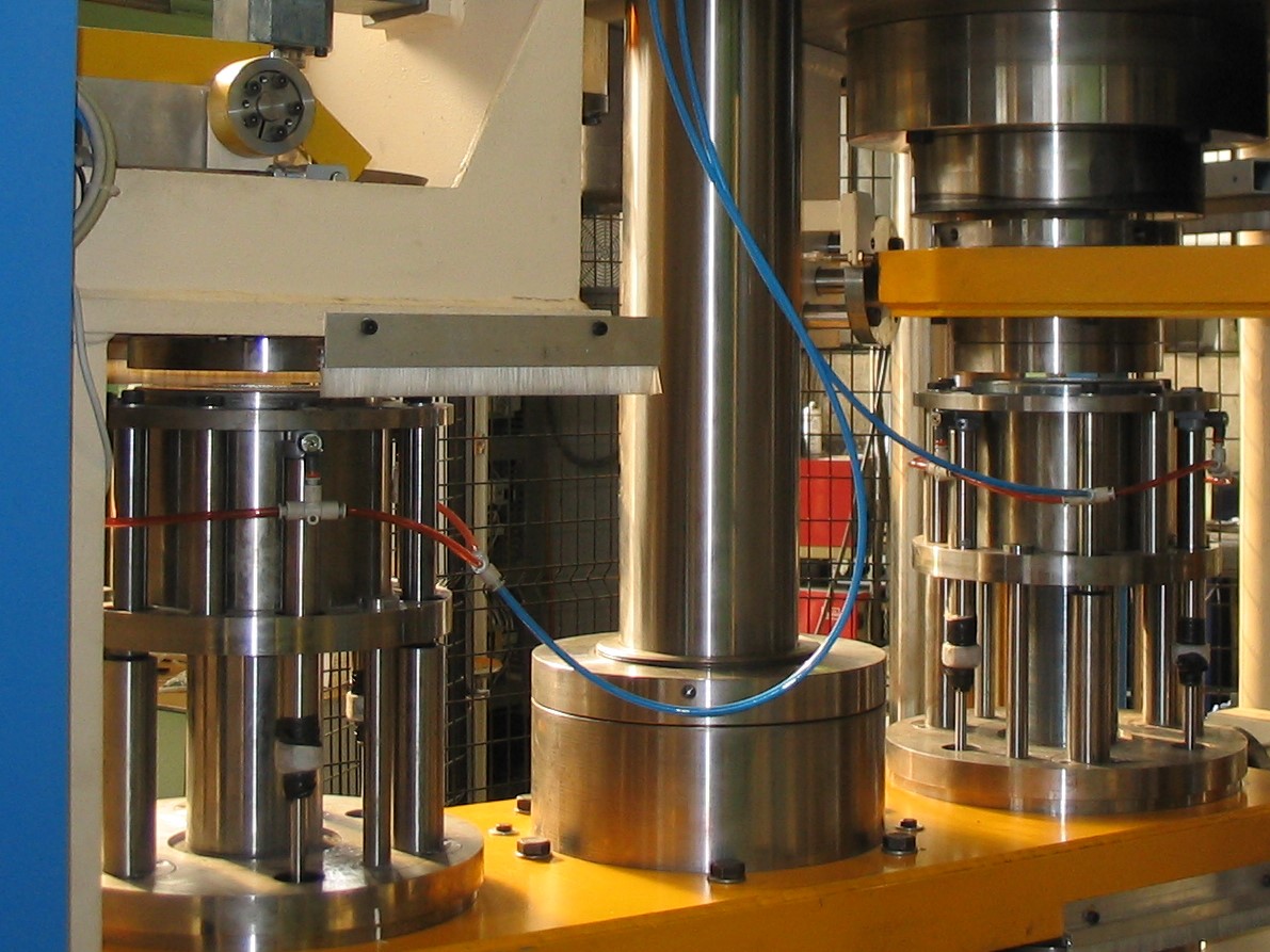 State of the art processing requirements need different machines, according mainly on the kind of material to be processed but also on production rates and quality standards to be met. Presses, both of ceramic and vetrified wheels and for cut-off and rough-grind disks, are equipped with proportionally controlled hydraulic drives or with electric drives to assure soft movements. Capacity ranges from 6 to 3.000 metric tons, while a full series of ancillary devices is provided in accordance with each project.